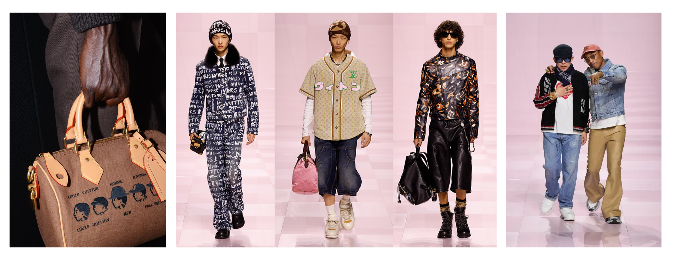Louis Vuitton’s Creative Director Pharrell Williams has pushed the fusion of streetwear and graphic art. For the 2024 Spring collection, Tyler, the Creator hand-drew the iconic ‘craggy monogram’ that was seen on items for the Capsule Collection. But this isn’t his first time. Pharrell has had a 25-year collaboration with Japanese designer NIGO. For the Louis Vuitton Fall-Winter 2025 Men's collection, titled "Remember the Future," NIGO’s workwear was merged with Pharrell’s streetwear through graphics and Japanese-inspired motifs, including NIGO’s handwriting on key pieces. See the pattern here? 😉