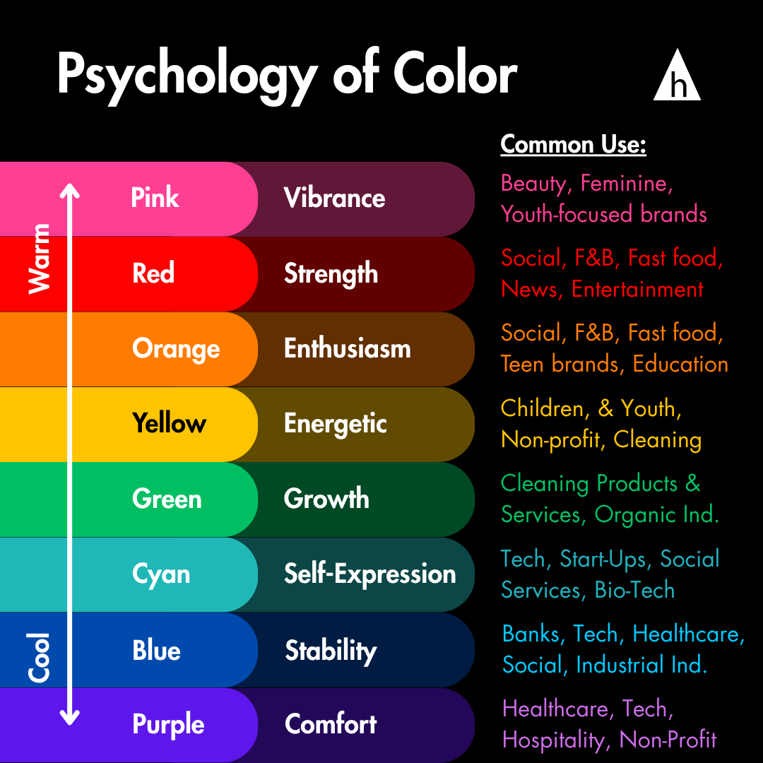 To understand this, we have to look at how color is used on certain websites. It is common for software companies to use blue as the main color on their sites. Blue is a non-threatening color. It directly correlates with a psychological feeling of trust or dedication–and we see this being utilized by tech, banks, and healthcare companies. (See chart below)